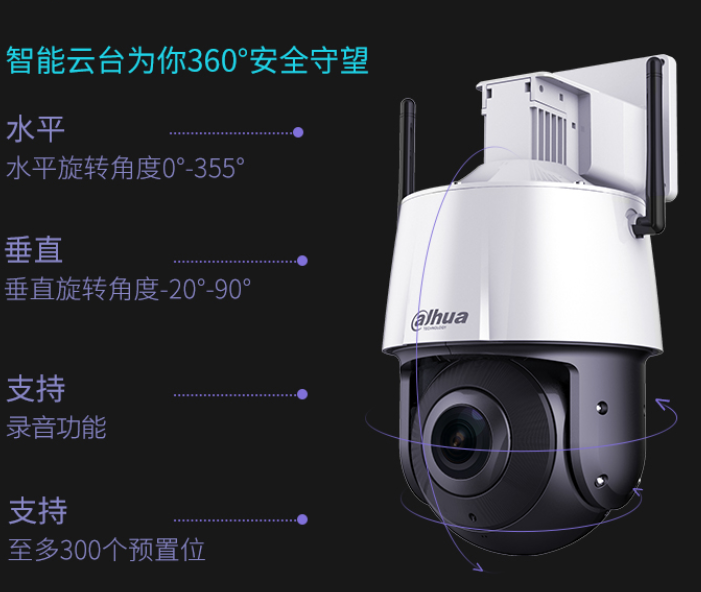 大华dahua200万摄像头 网络高清无线旋转云台球机摄像头 360°家用30米红外手机远程监控