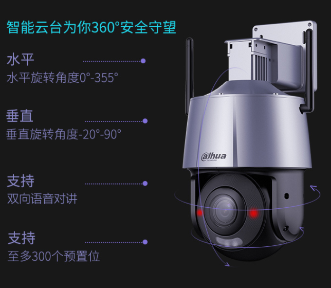 • 大华dahua400万摄像头 网络高清无线旋转云台球机摄像头 全彩夜视 360°家用监控