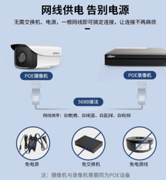 • 大华摄像头 300万监控摄像头POE 网络高清带录音红外夜视30米监控器 H265存储减半室内室外3.6mm
