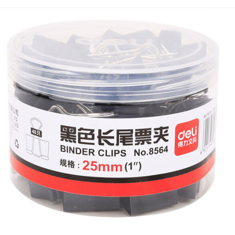 • 得力 夹子 桶装大中小号长尾夹彩色票夹 黑色25mm 8564