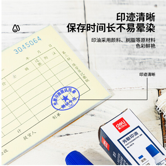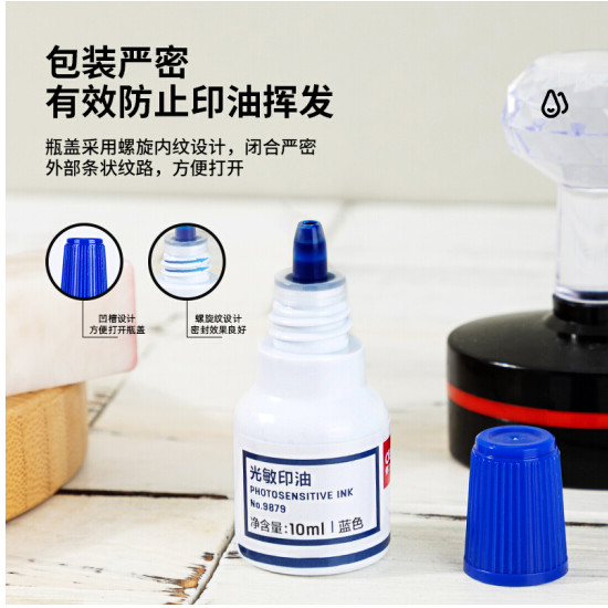 • 得力(deli)10ml财务印章光敏印油 蓝色印章印油 9879 蓝