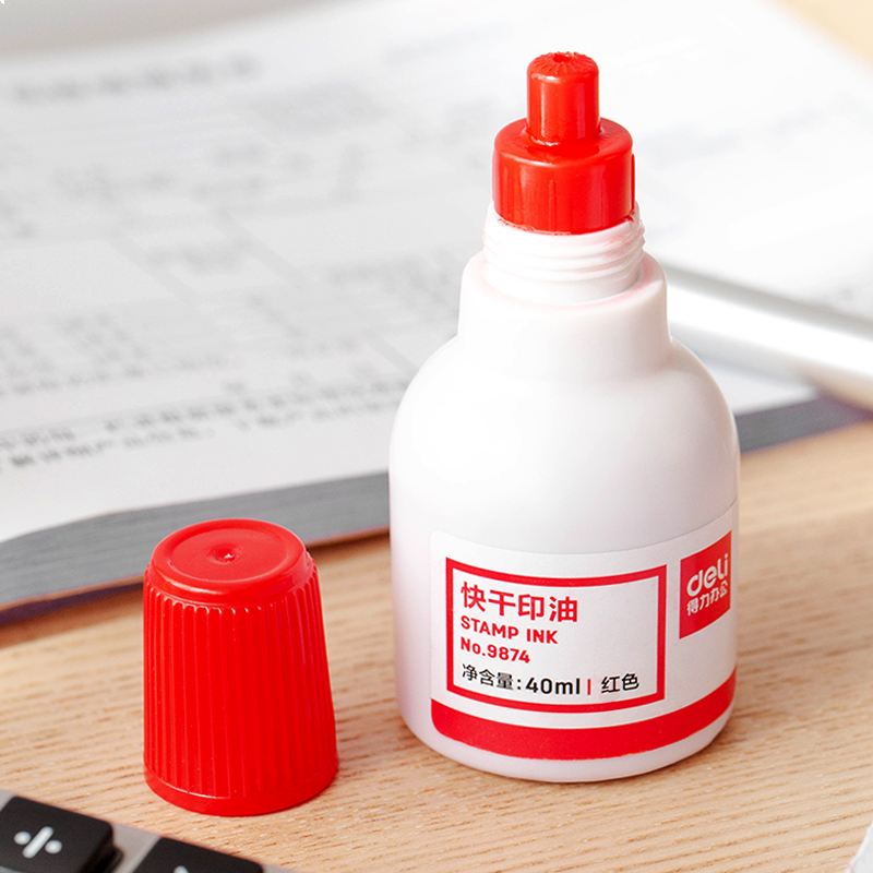 • 得力(deli)40ml财务印章快干清洁印油印泥 办公用品 红色9874