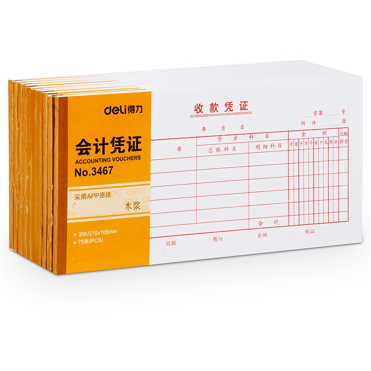 • 得力 3467 收款凭证会计凭证/凭单财务单据/票据 35k(210x105m (单位:本) 白色