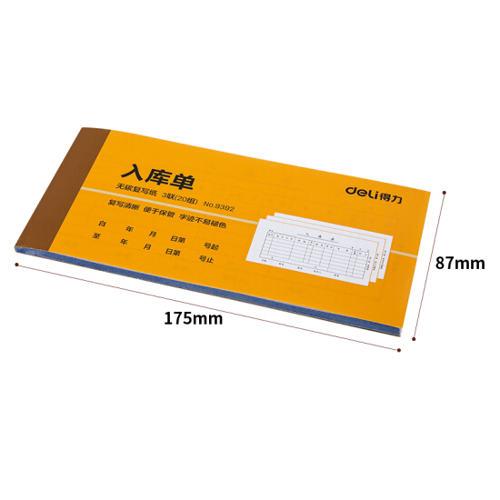 得力(deli)10本无碳复写三联入库单据 财务手写无碳复写单据 办公用品 9392