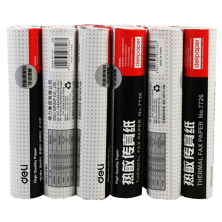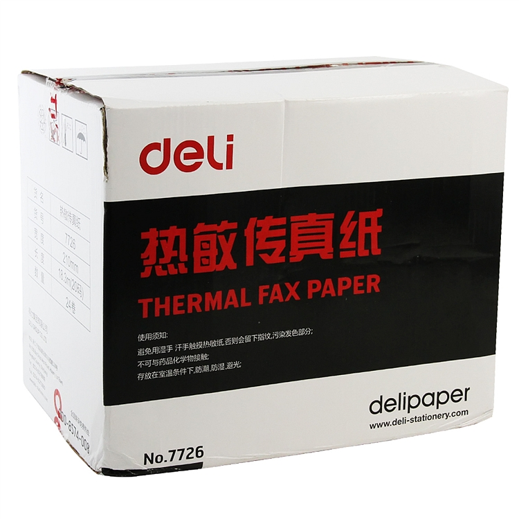 • 得力 7726 热敏传真纸 210mmx20码 24卷/盒 (单位:卷) 白
