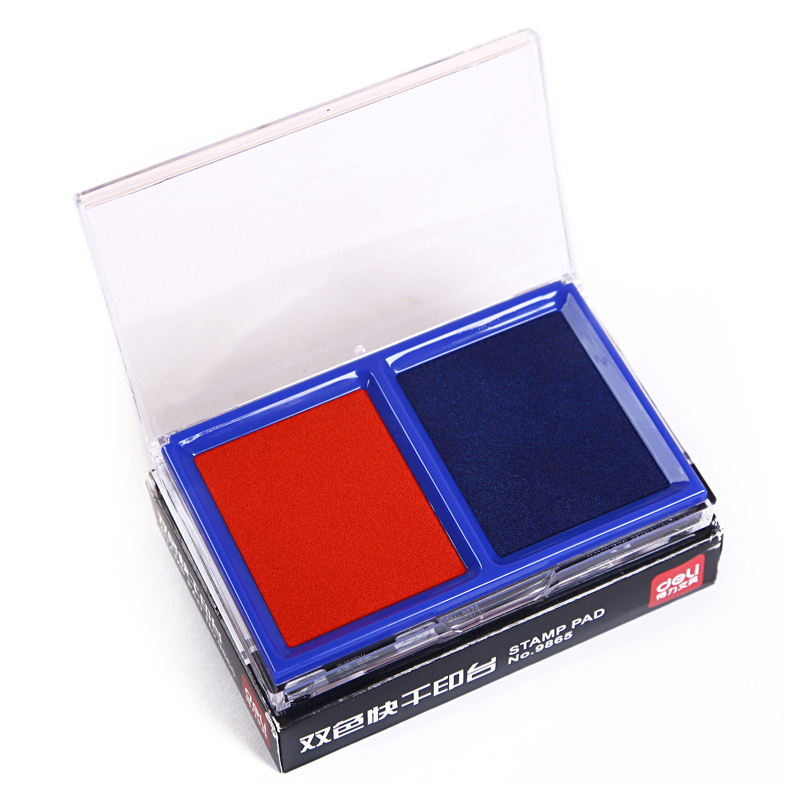• 得力 9865双色快干印台/印泥 红+蓝色 财务办公 一盒两色一盒两色