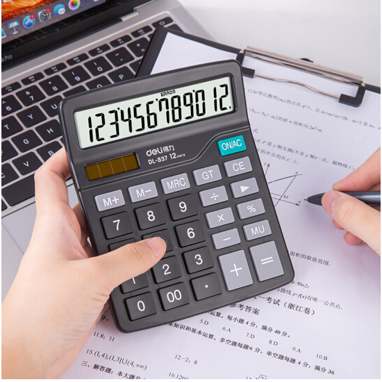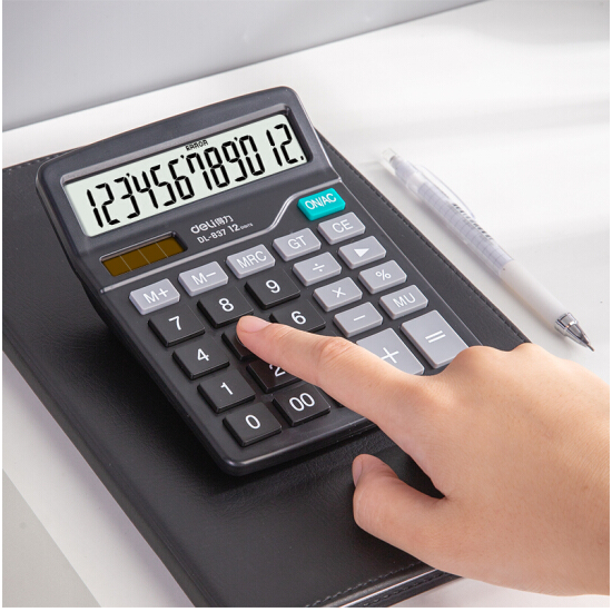 得力(deli)双电源轻便桌面计算器 12位大屏桌面计算机 办公用品 黑色837